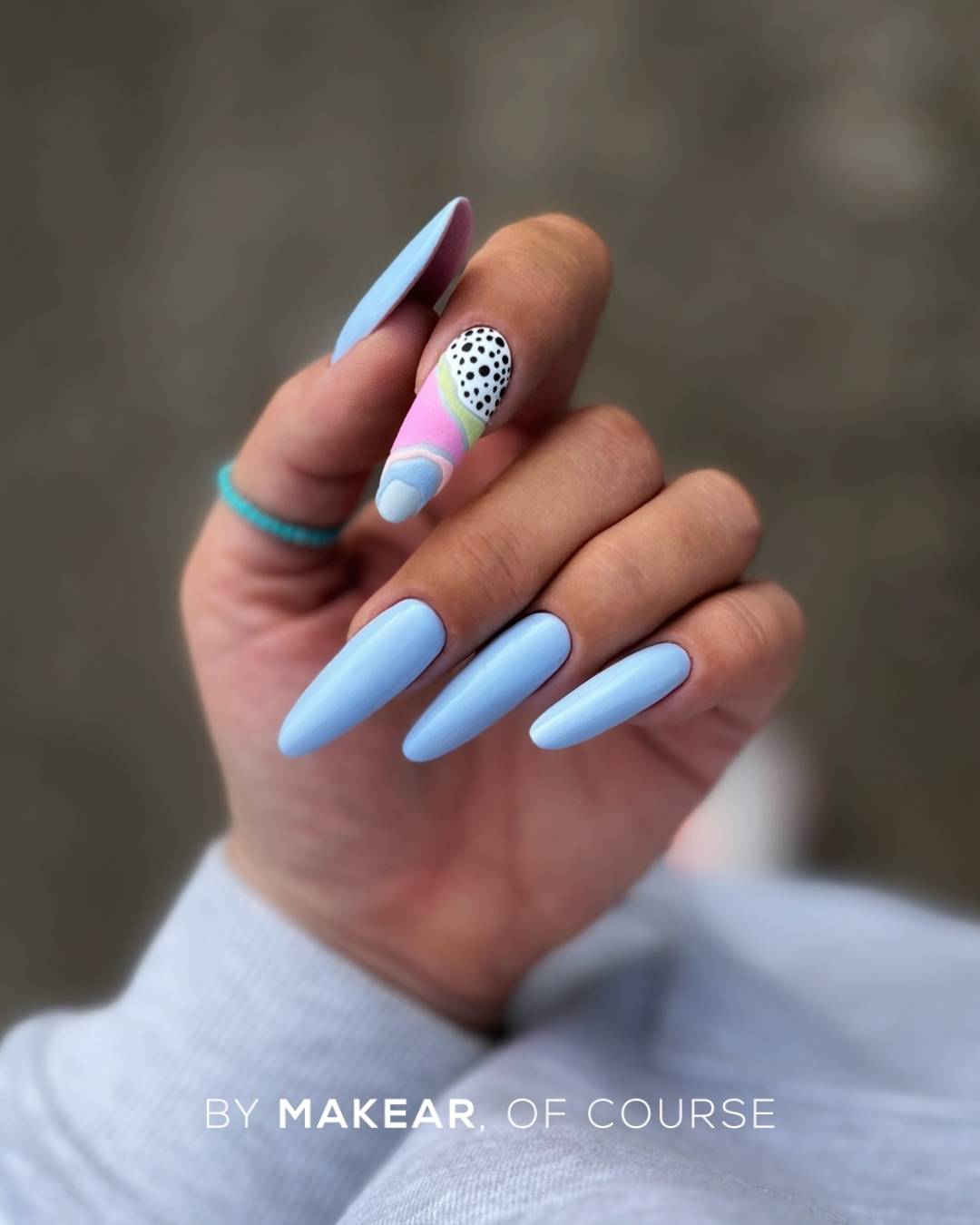 - Na uprzednio utwardzoną bazę do lakierów hybrydowych, zaaplikuj lakier hybrydowy MAKEAR.