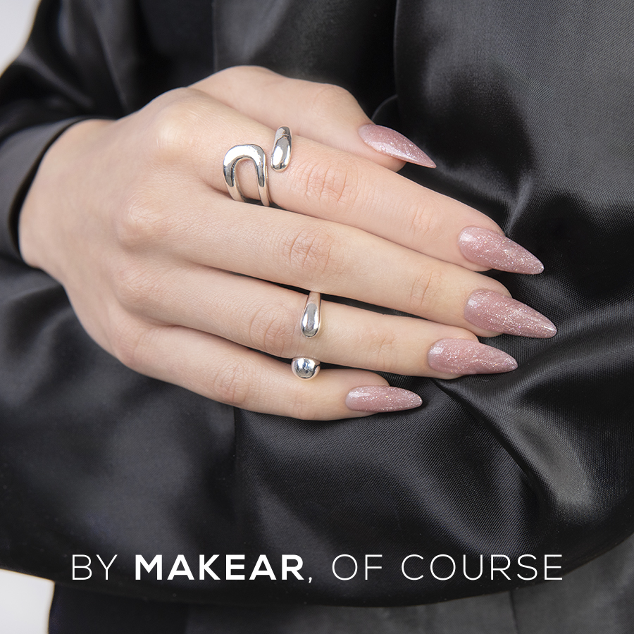 - Naturalny różowy odcień z opalizującą drobinką – idealny do delikatnych stylizacji bez lakieru